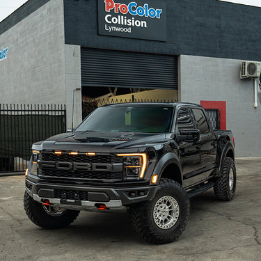 Tire Fitment: Fits up to 13.5" wide tires. Gen 3 Raptor pictured runs 37x12.5R17 BF Goodrich tires with a 2" leveling collar. Minor trimming may be required.