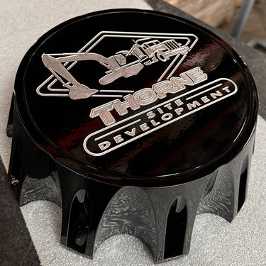 10 Lug Billet Aluminum Custom Floating Wheel Caps are fully customizable.
